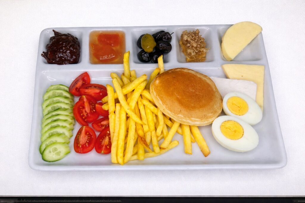 İçindekiler: Peynir çeşitleri, Mevsim yeşillikleri, Kayısı, Zeytin çeşitleri, Domates, Salatalık, Söğüş, Reçel, Fındık parçacıklı çikolata, Bal, Kaymak, Tereyağ, Köz kırmızı biberli meze, Tahin-Pekmez, Patates kızartması, Sucuk, Salam, Soslu Sosis, Pankek, Pişi, Çikolatalı krep, Mevsim meyveleri, Tereyağlı ve baharatlı kızarmış ekmek, Gözleme, Sigara Böreği, Patlıcanlı labne, Omlet. Adetli ürünler 4 tane olarak servis edilir. + Sucuk+ Menemen+ Parmak cips ve SINIRSIZ ÇAY